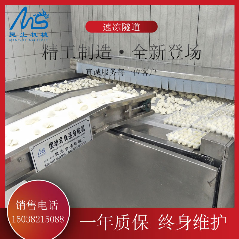 不銹鋼餃子速凍隧道主要用在速凍餃子流水線中,是速凍餃子流水線的快速冷凍裝置。速凍隧道應(yīng)用廣泛,不僅可以應(yīng)用在速凍餃子流水線中,還可以為各種食品、化工行業(yè)完成快速冷卻工作