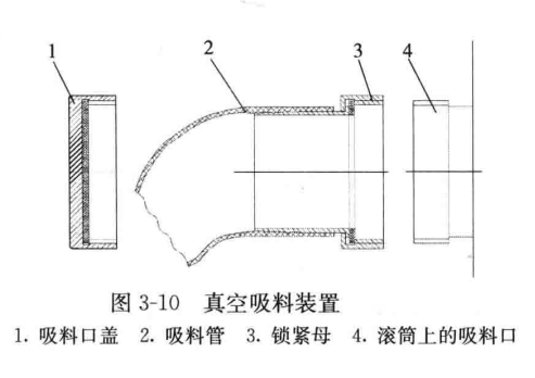 2、裝料:打開滾筒加料口,將注射過的肉塊及其他腌制料一起加入滾筒,蓋上加料口的蓋子。注意:不能在滾筒中直接加入粉狀的物料,以防把粉狀的物料吸入到真空泵中而損壞設(shè)備。如果要用真空吸料方式裝料(圖3-10),需要先把固態(tài)的物料從滾筒的進(jìn)料口處加進(jìn)滾筒內(nèi),再把流體物料從吸管吸入滾筒。方法是:取下吸料口蓋,把吸料管的下端插入到料筒內(nèi),把上端的鎖緊螺母和滾筒上的吸料口相連接,然后啟動(dòng)真空泵,把肉料吸入到滾筒內(nèi)。